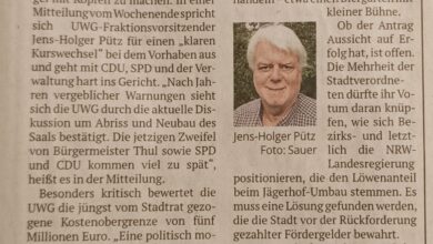 Die Pressemitteilung der UWG Bergneustadt: ist am 16. Februar 2026 in der Oberbergischen Volkszeitung (OVZ) und im Oberbergischen Anzeiger (OA)…